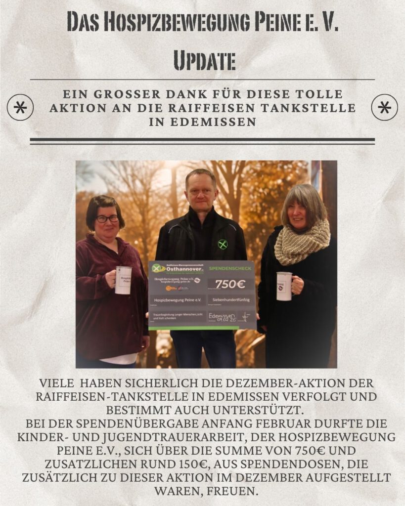 - „Man muss auch mal geben.“ (P. Winkler)Spende vom Cello Getränkemarkt in Peine ✉️ „Ich habe doch selber Kinder und weiß, wie es sich anfühlt, wenn sie krank sind.“ – so einfach bringt es Peter Winkler, Marktleiter der Fa. Cello in Peine … Weiterlesen: „Man muss auch mal geben.“ (P. Winkler)