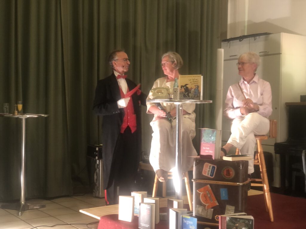 Der Moderator und Schauspieler Christoph Gilsbach holte in seiner Rolle als „Butler George“ ehrenamtlich Mitarbeitende und Koordination zum „Jubiläums-Talk“ auf die liebevoll aufgebaute Bühne im Friedrich-Spee-Haus in Peine. Koordinatorinnen und Ehrenamtliche berichteten, interviewt durch den Moderator, anschaulich und berührend von ihrer Arbeit, aus der Geschichte des Vereins, von Organisation, Ausbildung und Koordination, von intensiven Sterbe- und Trauerbegleitungen. So entstand ein buntes Bild aus der recht vielfältigen Arbeit in der Hospizbewegung.