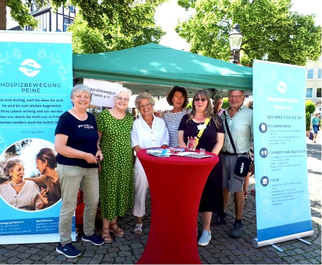 Die Ehrenamtsbörse in Peine ist immer eine gute Möglichkeit um sich einen Überblick zu verschaffen, wenn man in Peine ehrenamtlich tätig werden möchte. Immerhin arbeiten 40 Prozent aller Deutschen über 14 Jahren ehrenamtlich und setzen sich auf diese Weise für das Gemeinwohl ein! In diesem Jahr hatten wir bei der Ehrenamtsbörse nicht nur das beste Wetter, sondern definitiv auch den besten Platz im Eingangsbereich zur Börse: Viele interessierte Menschen kamen an unseren Stand und sprachen unsere ehrenamtlich Mitarbeitenden an, die den Stand betreuten und die Hospizbewegung vorstellten. Die Gespräche waren zum Teil lag und intensiv, und besonders schön war, dass auch einige Kinder kamen und nach unserer Arbeit fragten. (GR)